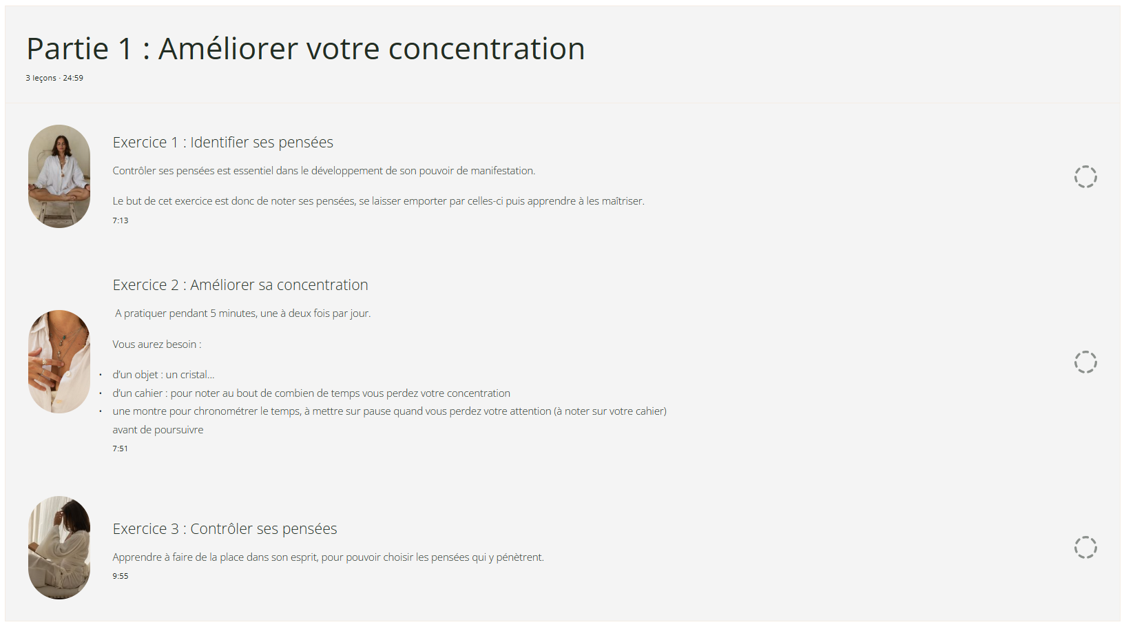 → 15 MINUTES / JOUR: Le programme est fait pour que même si tu as une vie très active tu puisses développer ton pouvoir de manifestation au quotidien.